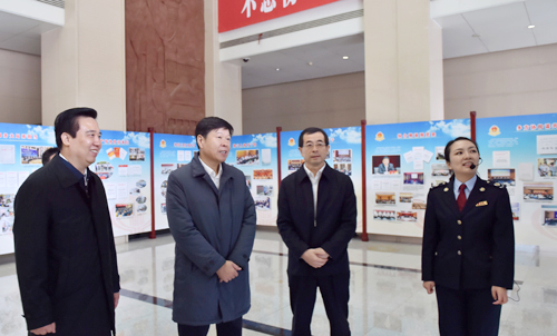 王军局长在省国税局实地参观了全省国税系统学习贯彻十九大精神、组织收入、营改增、落实政策、深化改革、优化服务、倾情带队、从严治党等情况展板,并不时与陪同的省领导及其他人员沟通交流。
