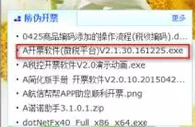 2、点击页面左下方的“用户软件下载”,在“防伪开票”里找到“A开票软件(微税平台)V
