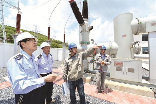 图为:保康县国税局人员到跟踪服务了6年的企业——保康风力发电有限公司黄连山一期项目了解情况。税务人员“手把手”教企业财务人员使用手机自助办税系统。