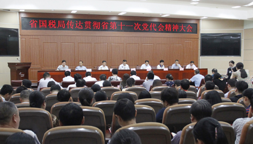 7月3日,省国税局召开省局机关党员大会,省党代会代表、省局党组书记、局长胡立升同志传达省第十一次党代会精神,并就贯彻落实工作进行安排部署。