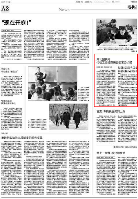 “国税机关代收工会经费有利于简化程序,提高效率,为缴费人提供更加优质便捷的服务。”工会经费缴费人、湖北新冶钢有限公司相关负责人说。