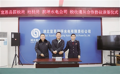 近日,湖北省宣恩县国税局、地税局专程到洞坪水电公司开办税收沙龙暨涉税辅导培训,并签订税收遵从合作协议。根据协议,双方将在涉税信息交换、涉税诉求响应、税收风险防控、税收争议法律援助及特殊税务事项处理等方面开展合作。