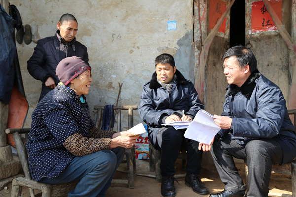1月8日,冰天雪地,晴空初放。钟祥市国税局党组书记、局长曾国锋率市局党组一班人、部分科室负责人及扶贫工作组队员20余人,驱车一个半小时来到该局扶贫点——双河镇三同村,走访慰问结对贫困户。走访慰问中,大家分为六个小组,冒着严寒冰冻路滑,踏着积雪走村串户,了解贫困户家庭成员、生活状况及经济情况,将党的关怀与温暖送到每一户贫困户家中,并宣传扶贫政策与措施,征求意见与建议,鼓励他们凭自己的双手与智慧创造更加美好的生活与明天。
