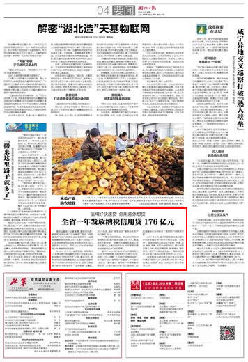 省国税局与建设银行湖北省分行将随州模式“推而广之”,全省有1669家小微企业通过“云税贷”授信15.39亿元,累计贷款13亿元。
